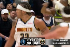 下一篇: 多余动作!麦克丹尼尔斯篮下直接将约基奇推出底线吃T
